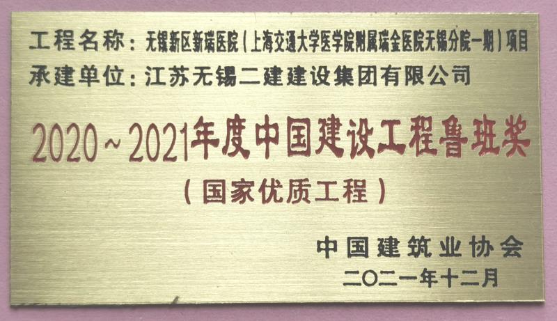 11月25日,中國(guó)建筑業(yè)協(xié)會(huì)在廣西南寧召開(kāi)2020~2021年度魯班獎(jiǎng)?lì)C獎(jiǎng)暨行業(yè)技術(shù)創(chuàng)新大會(huì),由公司總承包施工的無(wú)錫新區(qū)新瑞醫(yī)院項(xiàng)目二標(biāo)段喜獲“魯班獎(jiǎng)”,這也是公司首次總承包施工的項(xiàng)目獲得國(guó)家建筑工程最高獎(jiǎng)項(xiàng),各項(xiàng)目部、子(分)公司要以此次獲得“魯班獎(jiǎng)”為契機(jī),牢固樹(shù)立質(zhì)量意識(shí),不斷提高工程質(zhì)量,全面提升產(chǎn)品和服務(wù)水平,再接再厲,打造更多的精品工程,為公司品牌信譽(yù)建設(shè)添磚加瓦。新瑞醫(yī)院病房大樓,地下二層,地上十九層,建筑面積51110平方米,工程先后獲得了全國(guó)建筑業(yè)綠色施工示范工程、省揚(yáng)子杯優(yōu)質(zhì)工程、省標(biāo)化工地等榮譽(yù)。